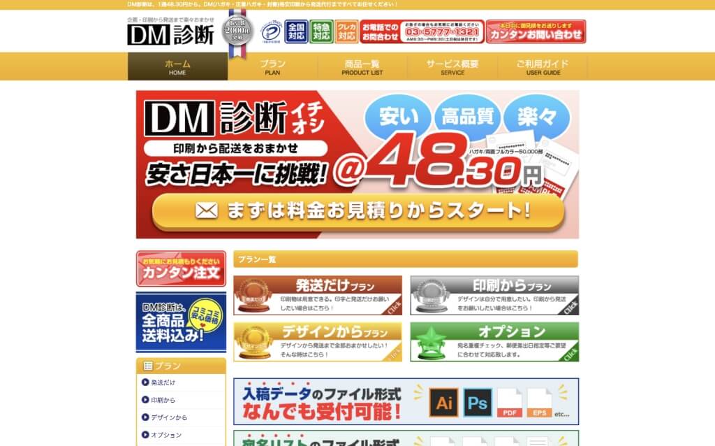 DM診断は低価格・高品質・短納期が特徴のDM発送代行サービスです。最短で当日発送の早さが特徴です。