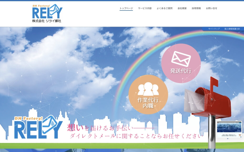 株式会社リライ郵社は「信頼」「迅速」「低価格」が特徴のDM発送代行サービスです。