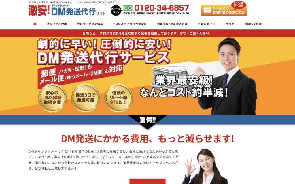 激安!DM発送代行サイトは、業界最安級を掲げるDM発送代行サービスです。