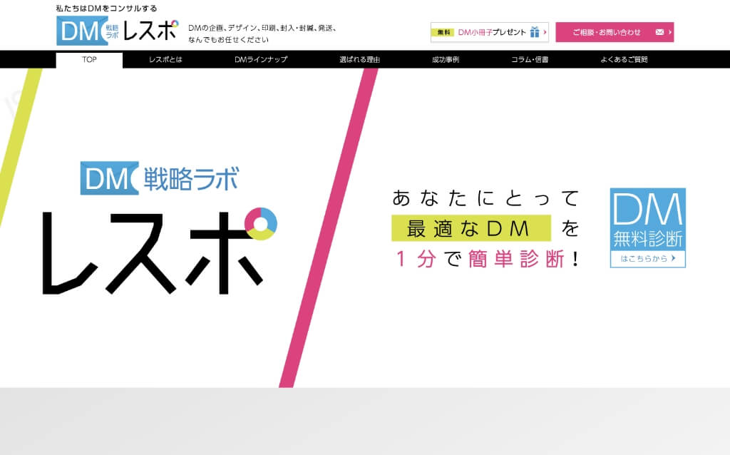DM戦略ラボ レスポは企画・デザインから発送までを対応できるサービスです。日本郵便との直接契約により、安価で安心な発送を実現しています。