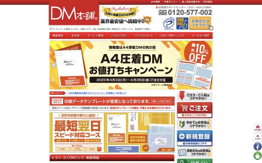 DM本舗は先ほど紹介した株式会社リライ郵社が運営する通販型DM発送代行サービスです。