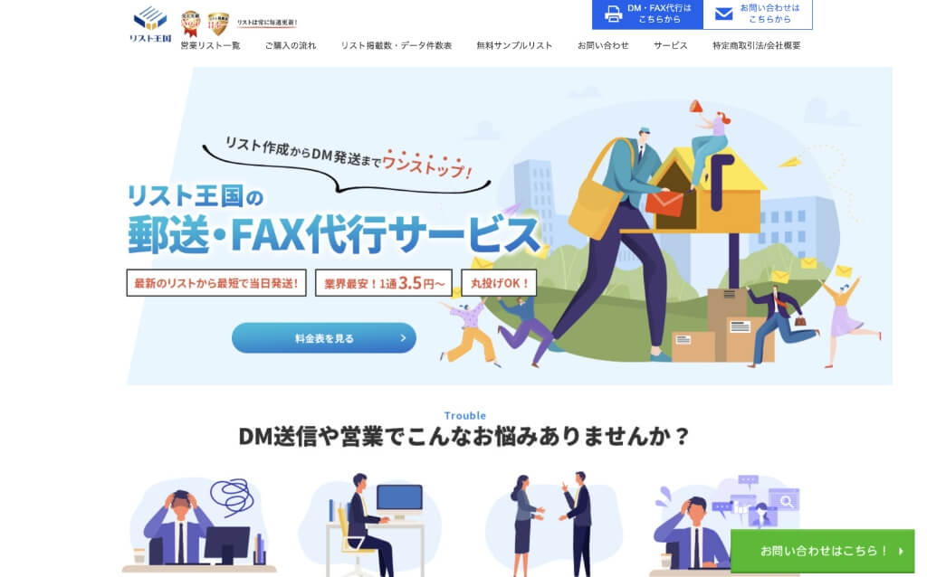 こちらでも最少ロット1通〜のDM発送代行サービスをおこなっています。元々、リスト販売サービスのため、リスト販売に強みを持つサービスです。